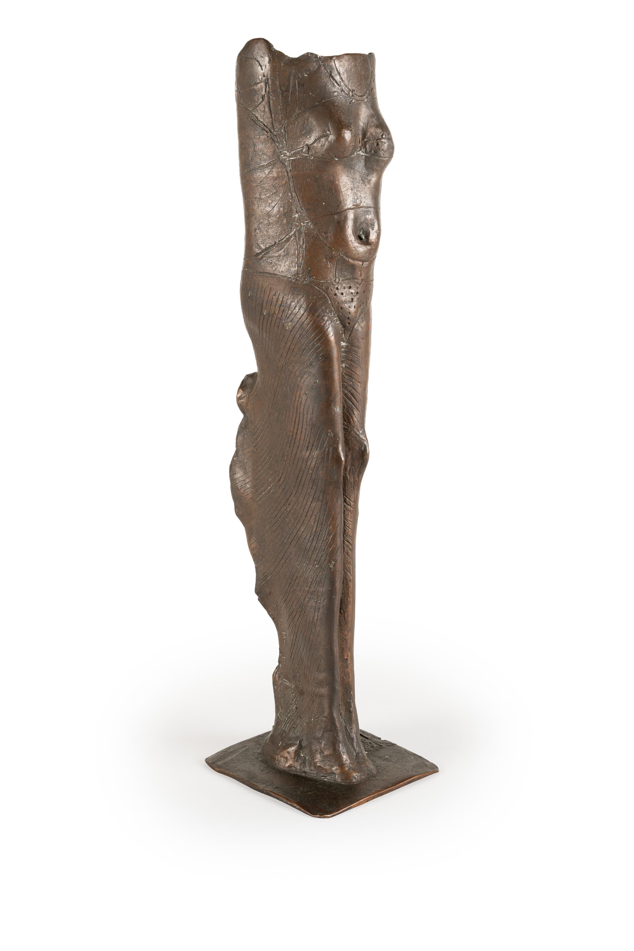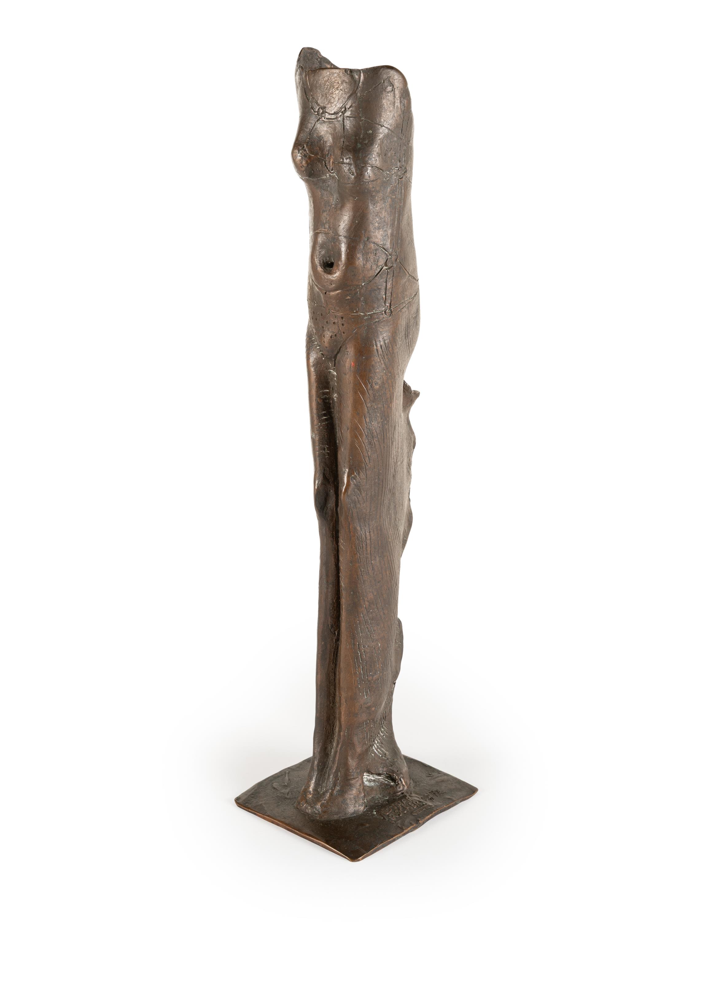 Bronze mit brauner Patina. 1972. Ca. 42 x 11 x 9 cm. Eines von insgesamt ca. 10 nummerierten, teils später gegossenen Exemplaren. Verso am Gewand vertikal signiert und datiert sowie auf der Plinthe mit dem Signaturstempel und nochmals datiert.